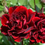 Krūmroze skaistiem, tumši sarkaniem ziediem, aug kā spēcīgs, stāvus krūms ar lielu, tumšu lapotni, Viegla smarža, h-1,5m. Izturīga